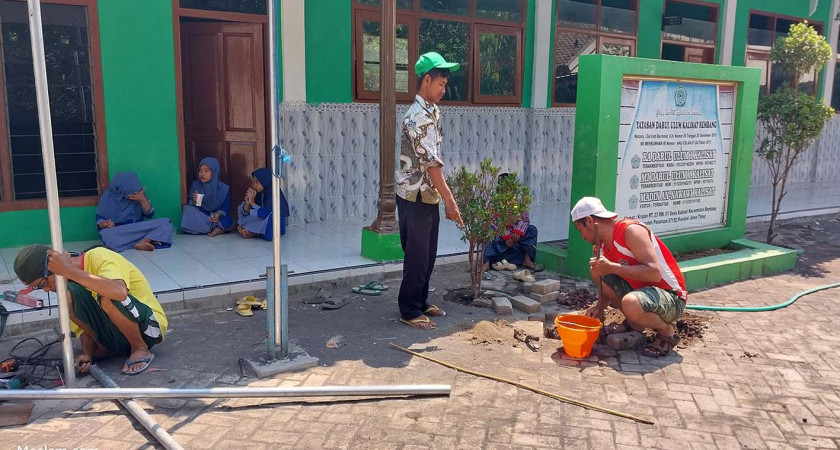 Membangun Semangat Olahraga: Pembuatan Tiang Net Badminton di MI Darul Ulum I Kalisat
